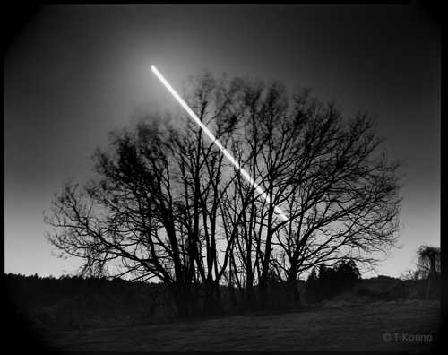 The sun penetrates from the front to the rear, I understand that distorted space-time. 丘の木 2015 太陽が前方から後方へ突き抜けた、時空が歪んだ。 |